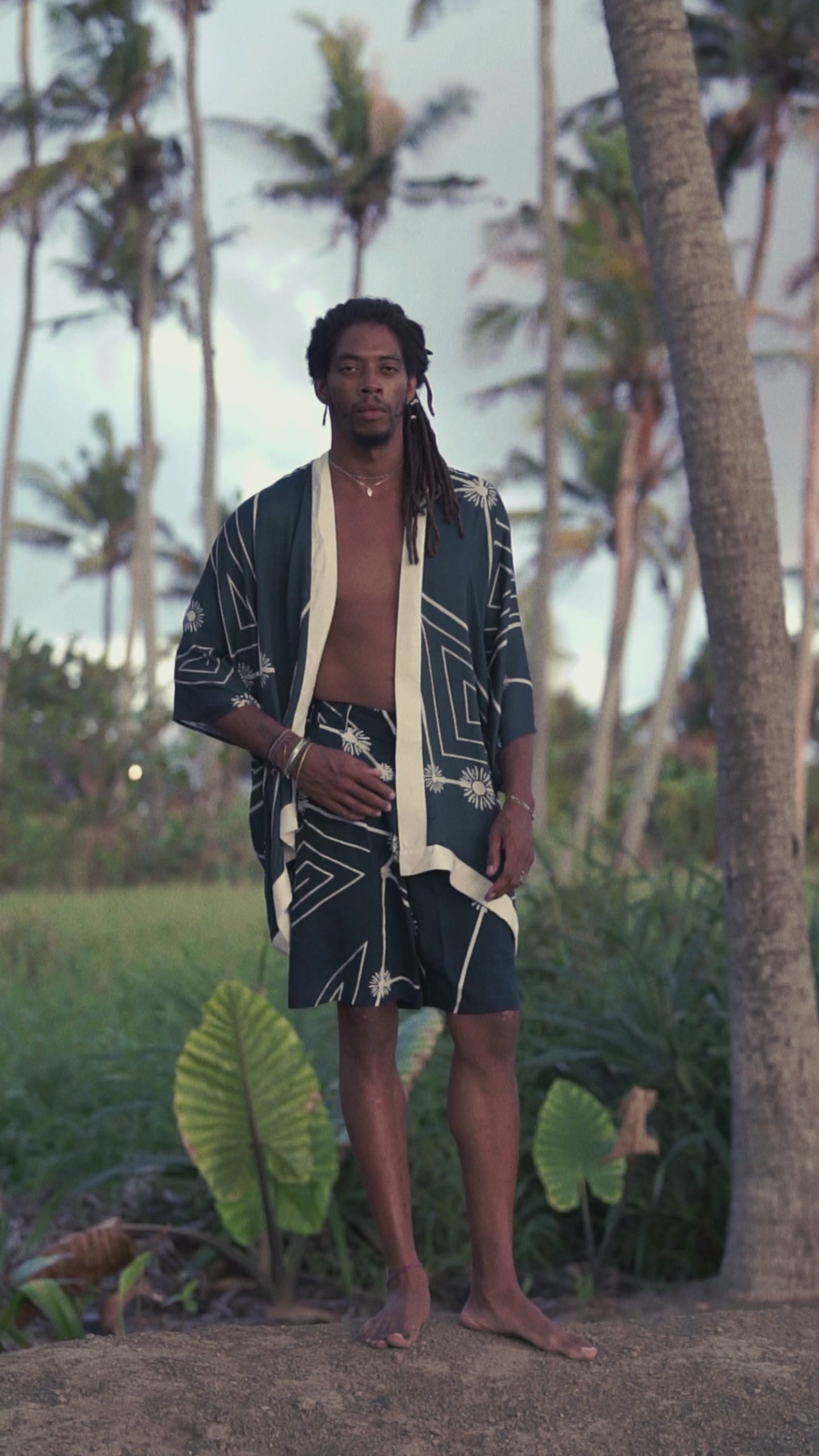 The Batwing Kimono in Constellation flows like the night sky — soft, fluid, and full of quiet energy. Handcrafted in Bali from Rayon Viscose, this unisex robe moves effortlessly with your rhythm, offering comfort, breathability, and timeless celestial charm.